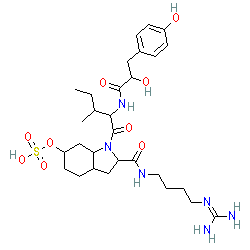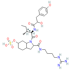 IUPAC name: 2-((4-guanidinobutyl)carbamoyl)-1-((2-hydroxy-3-(4-hydroxyphenyl)propanoyl)-D-isoleucyl)octahydro-1H-indol-6-yl hydrogen sulfate