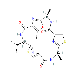 IUPAC name: (12Z,52Z,92Z,2R,6R,10R)-10-isopropyl-15,2,6-trimethyl-3,7,11-triaza-1(2,4)-oxazola-5,9(4,2)-dithiazolacyclododecaphane-4,8,12-trione