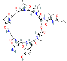 IUPAC name: (2S)-N-[(3S,7S,13S,16S,22S,27S,30S,32S)-16-(2-amino-2-oxoethyl)-13-[(4-hydroxyphenyl)methyl]-32-methyl-22,27-bis(2-methylpropyl)-2,6,12,15,18,21,24,26,29-nonaoxo-5-oxa-1,11,14,17,20,23,28-heptazatricyclo[28.3.0.07,11]tritriacontan-3-yl]-2-(butanoylamino)-3-methylbutanamide
