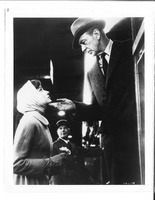 A misty-eyed Ariane (Audrey Hepburn), holding flowers, looks up at Frank (Gary Cooper) as he boards the train. Frank, leaning out the door, delicately lifts her chin as the usher looks on.
