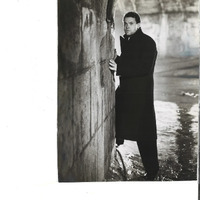 Front: Orson Welles as Harry Lime, dressed in a black wool coat, running from his friends and the law underneath Vienna.